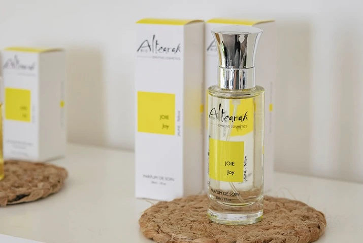 Inspiré de la chromothérapie, Altearah associe à chaque couleur une synergie d’huiles essentielles bio pour un voyage émotionnel unique. Chaque parfum de soin correspond à un besoin spécifique: pureté, fraîcheur, confiance... Les parfums de soin peuvent être utilisés en olfaction grâce au Rituel Olfactif ou directement sur la peau. Une approche sensorielle unique qui relie couleur, senteur et bien-être pour retrouver naturellement son équilibre intérieur.