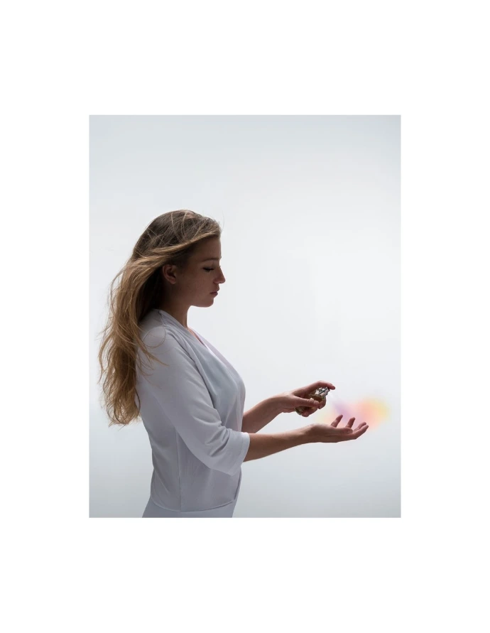 Vaporisez 2 à 3 fois dans le creux des mains votre parfum de soin.